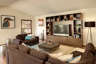 "In my opinion the biggest mistake made when hanging art is hanging it too high. Never think of art as something to fill a blank wall, think of it as an integral part of the entire space and should therefore have some visual connection to its environment. As a general rule, art should be at eye level from where it will be viewed. If this is from a seating area it will be at a seated eye height. Above a sofa, I usually like an approximate 10” spacing. In a contemporary open plan space use the hanging of the art to help define rooms within the room. Don’t hang your art on walls between areas, negative space is just as important as the art to make all areas feel cohesive and comfortable and make the art prominent."