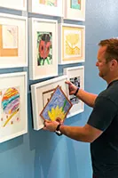"If you have children in the home, you’ll definitely have a lot of bright and colorful artwork to display (and that they will want to be shown off to guests), orient the art in symmetrical groupings and sophisticated frames for a custom & professional look."