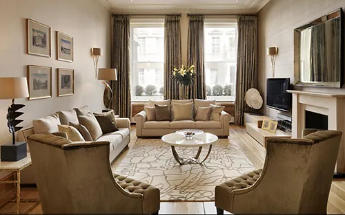 "Lining alcoves either side of a chimney breast with floor to ceiling mirror and hanging artwork on top of this creates a glamorous, multi-layered look whilst bouncing light around a room."