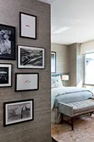 "Fill a wall with multiple pieces of art of the same subject or type when you want to create an impact and reveal a story, but first want your eye to focus on something else in the room."