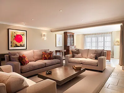 "Don’t put pictures too far up the wall. Pictures should be at eye height (obviously dependant on height of room, but a good rule of thumb). Pictures displayed in groups often look better than single pictures dotted around the room. Don’t be afraid to have blank walls. Good lighting makes better art – there are some great lights on the market now. Do be aware of the different tones of LED lights and the affect these will have on the colours in your pictures. When planning your room and electrical layout, always think about your art & Give sculptures ‘space’."