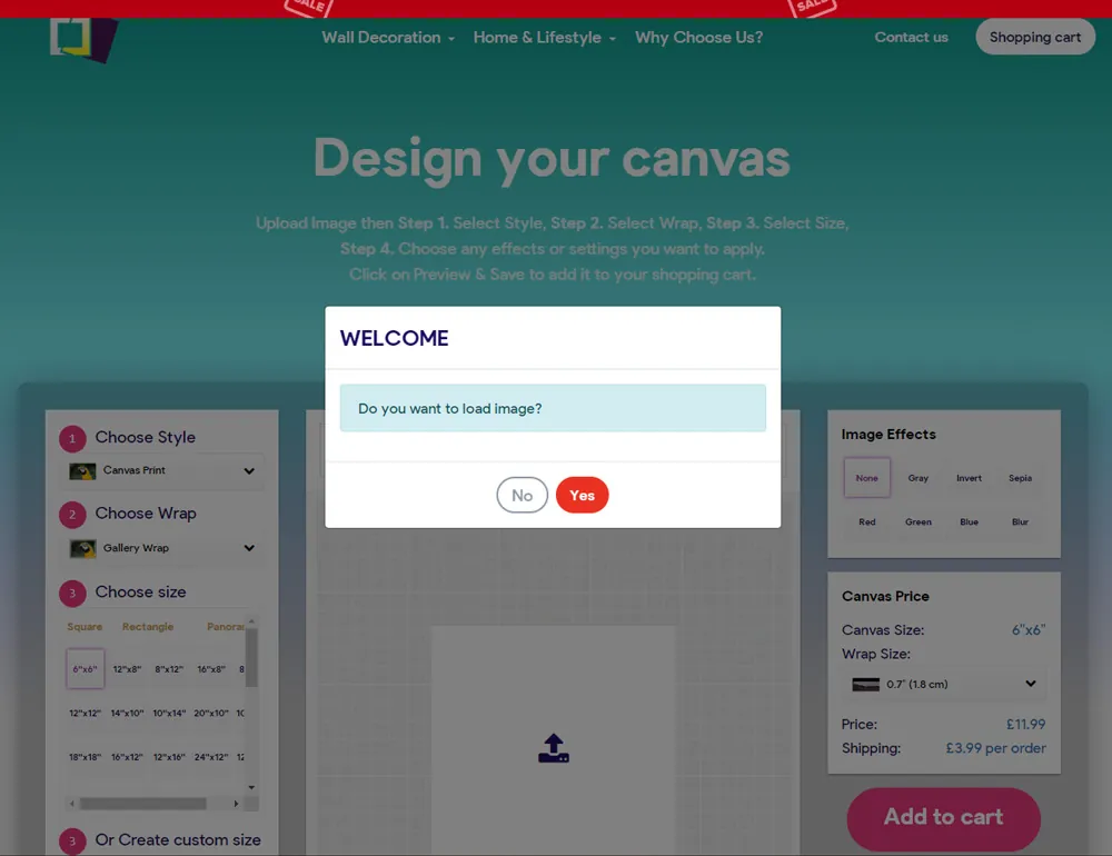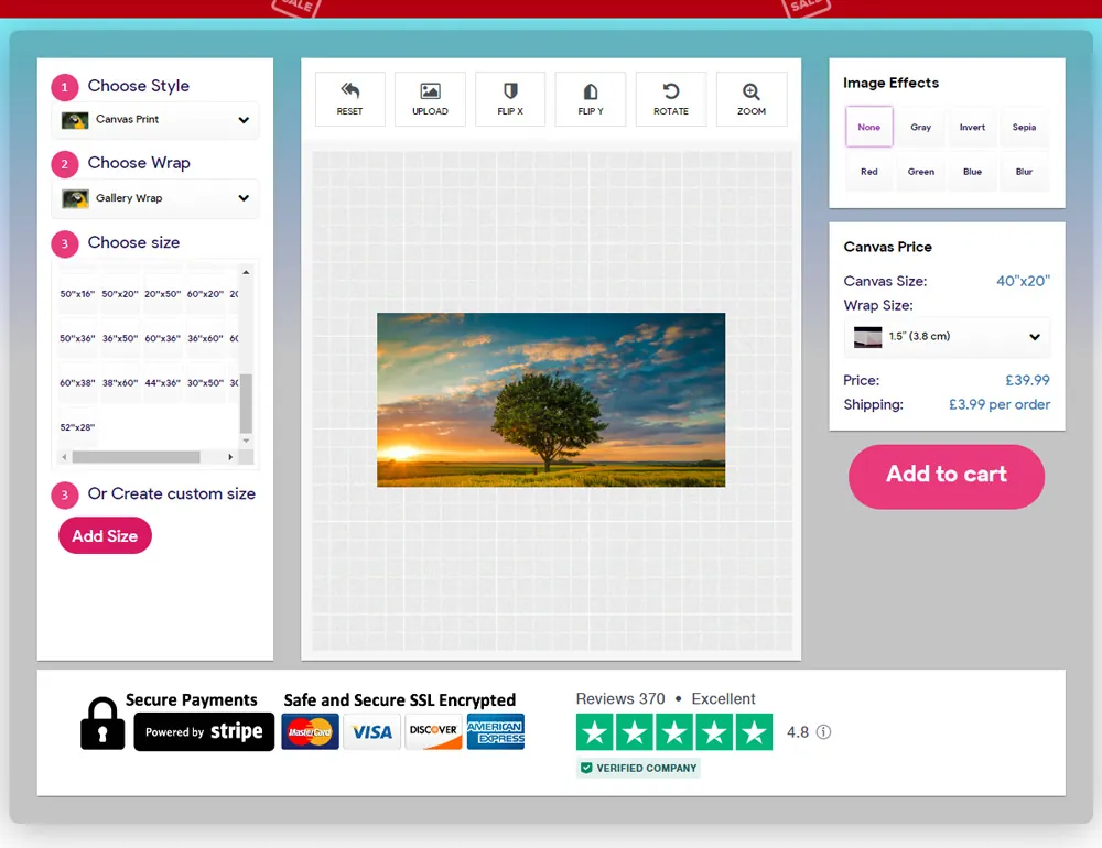 Select the style you prefer. You can choose Single Canvas Prints, Split Canvas Prints and even Multi photo canvas prints